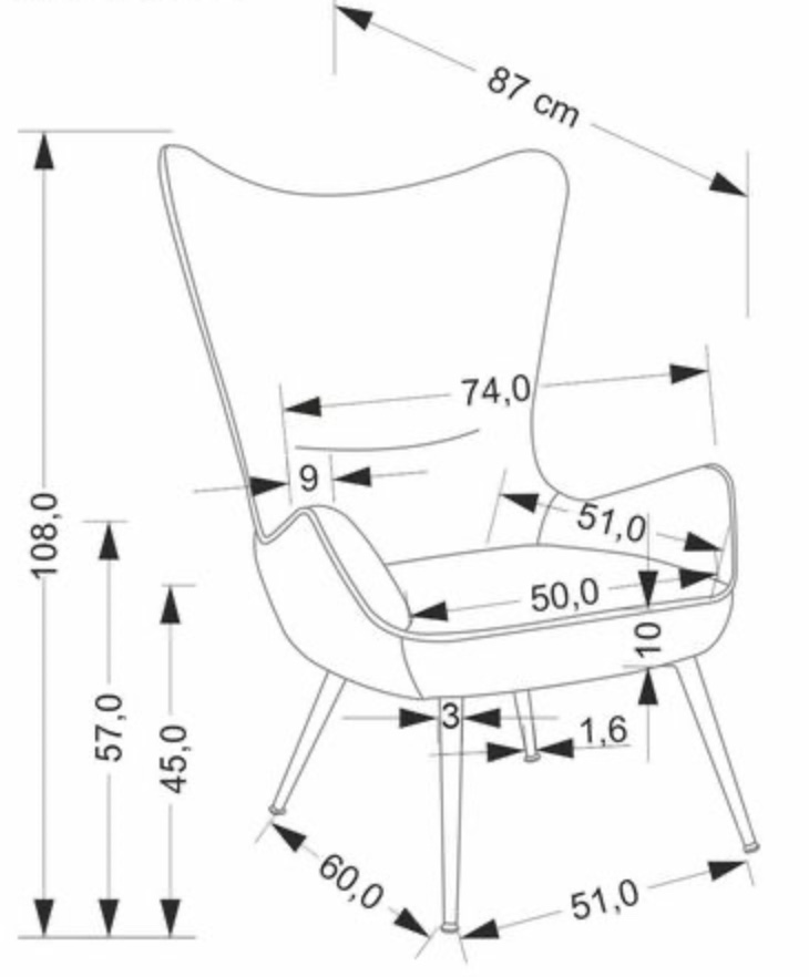 Dizajn, ktorý priťahuje pozornosť. Vysoké operadlo a široké podrúčky poskytujú najvyššiu úroveň pohodlia. Tvar „ucho“ obopína siluetu a vytvára dokonalé miesto na odpočinok. Kontrastné čierne nôžky dodávajú celému kúsku súčasný vzhľad, ktorý zapadne do klasických aj moderných aranžmá.