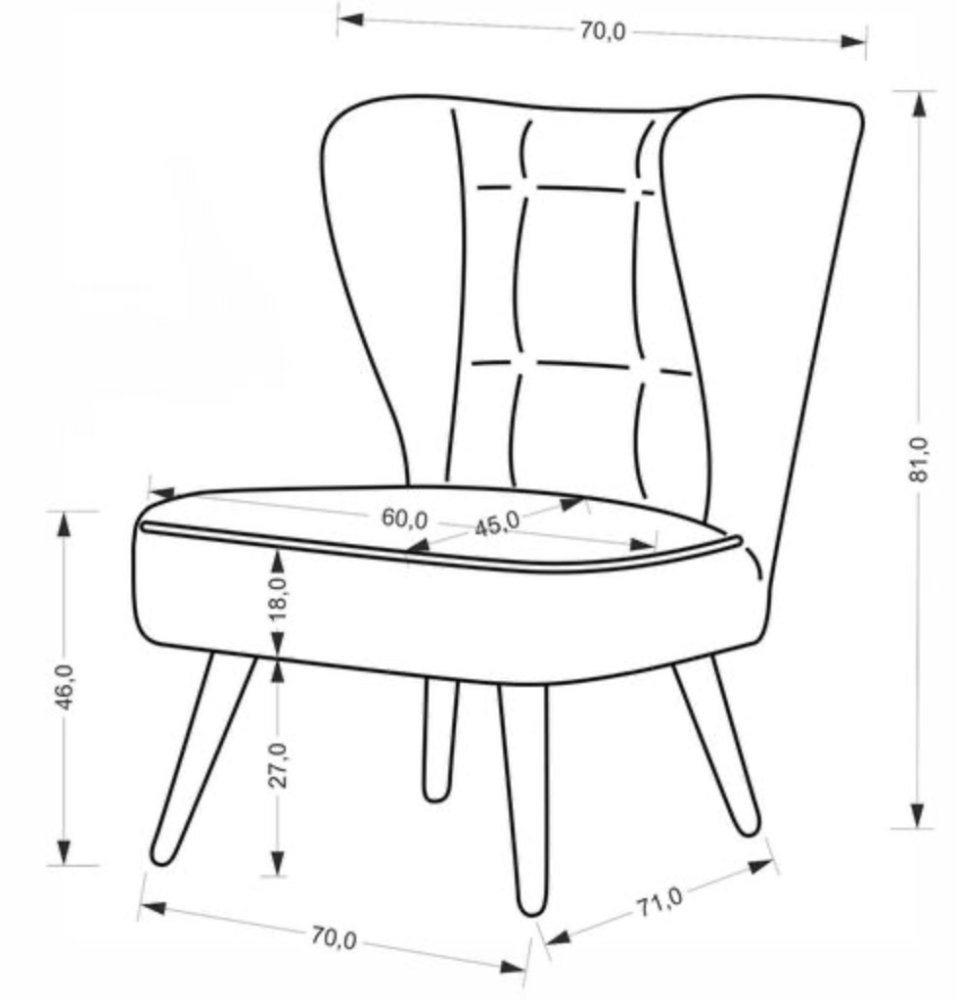 Odolnosť a elegancia, ktorá vydrží roky. Jemne sa zužujúce drevené nohy v prírodnom odtieni dodávajú kreslu ľahkosť a zároveň zaručujú stabilitu a odolnosť pri každodennom používaní. Prešívané operadlo je detail, ktorý zdôrazňuje nadčasovú eleganciu a dodáva interiéru jedinečný charakter.