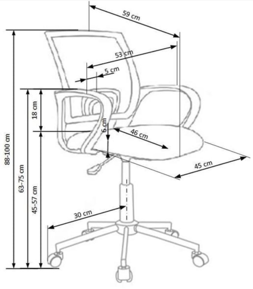 - výška sedu: 45 - 57 cm