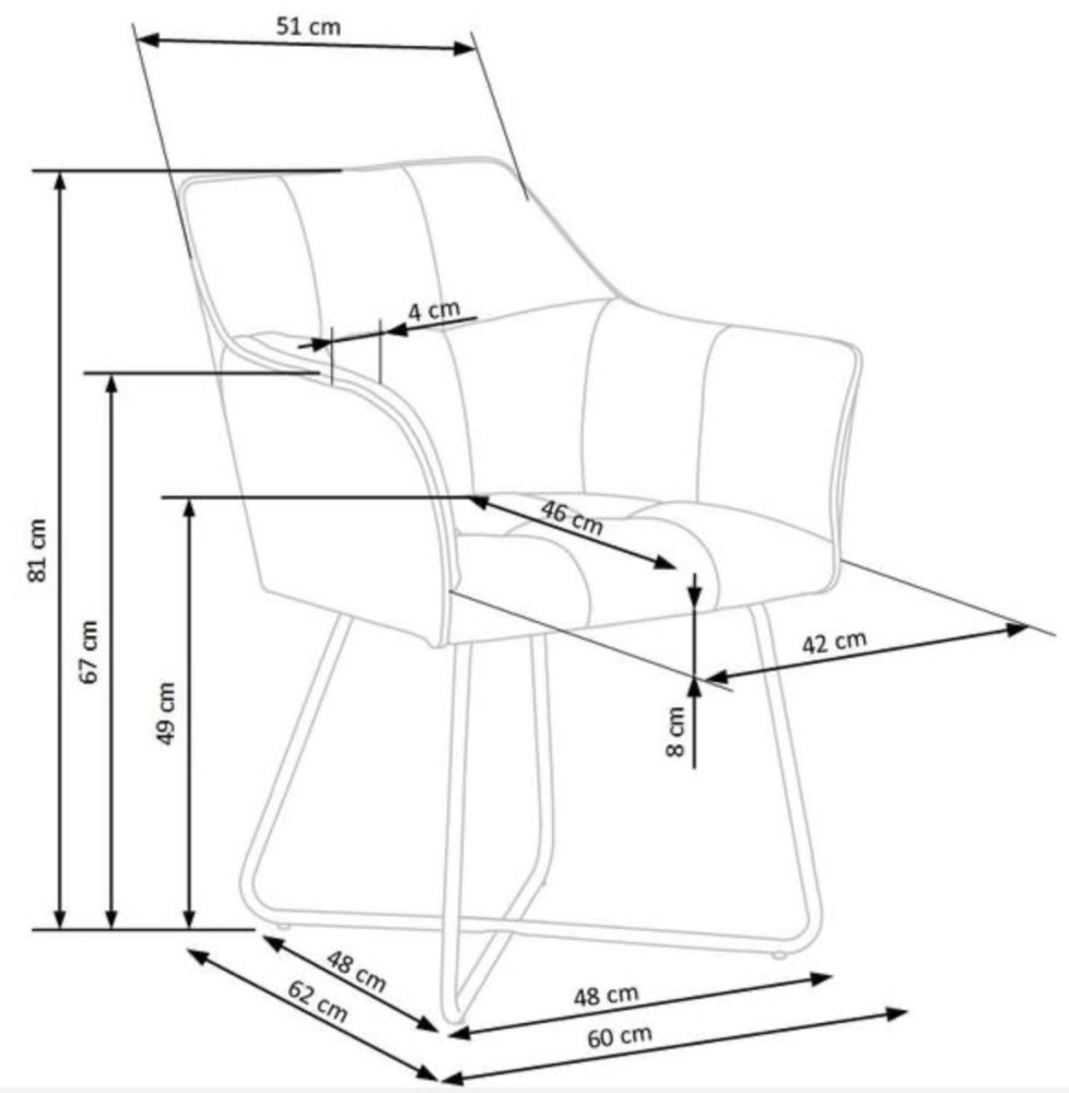 Stolička K377 je konštrukcia so zaoblenými hranami a podrúčkami, ktorá sa vďaka štýlovému prešívaniu bude hodiť ako do modernej obývačky, tak do industriálnej obývačky. Tvarovaný tvar, čalúnený tmavo sivou zamatovou látkou, nabáda k relaxácii - navodí do miestnosti útulnú atmosféru, ktorá napomôže celkovej relaxácii. Vysoké operadlo je kombinované s podrúčkami, vďaka ktorým stolička poskytuje komplexnú oporu chrbtici - ani dlhé sedenie nespôsobí nepohodlie. Vnútorná časť kresla je jemne prešívaná, čo v kombinácii s skôr tmavou farbou vytvorí elegantnú atmosféru v obývacej miestnosti. Model K377 je umiestnený na stabilnej podnoži v tvare sklznice z čiernej práškovo lakovanej ocele. Dodávané v demontovanom stave.