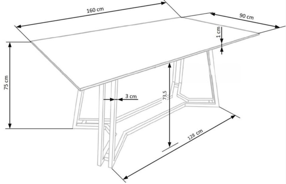 KONAMI je stôl s hornou plochou 160 x 90 cm, ktorý sa bude skvele hodiť do glamour interiéru. Obdĺžniková doska stola a atraktívne podnož majú originálnu povrchovú úpravu. Stabilná, geometrická základňa je vyrobená z pochrómovanej ocele zlatej farby. Nerozkladací stôl pre 6 osôb je vybavený priestrannou sklenenou doskou s dekórom čierneho mramoru. Pôsobivý tvar jedálenského stola KONAMI bude nielen jedinečnou ozdobou priestoru jedálne, ale aj miestom pre rôzne stretnutia. Zlatý stôl Konami je určený na svojpomocnú montáž. Hmotnosť stola 55,5 kg.