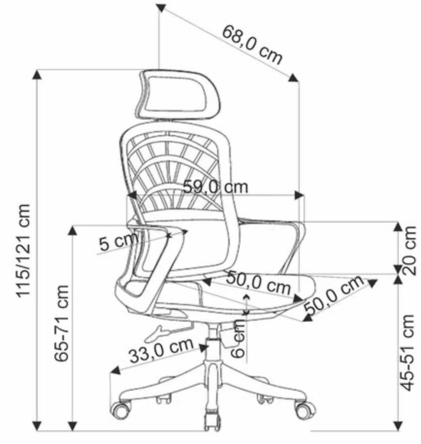 Nastaviteľná opierka hlavy je ďalším prvkom zvyšujúcim komfort používania. Môžete nastaviť výšku opierky hlavy, ktorá poskytuje dostatočnú oporu pre váš krk a hlavu, aj keď sedíte po dlhú dobu. Sedák vyrobený z vysoko kvalitnej tkaniny zaručuje pohodlie, odolnosť a ľahké čistenie. Sieťovaná chrbtová opierka poskytuje vynikajúcu ventiláciu, ktorá umožňuje pokožke voľne dýchať aj pri dlhodobom sedení.
