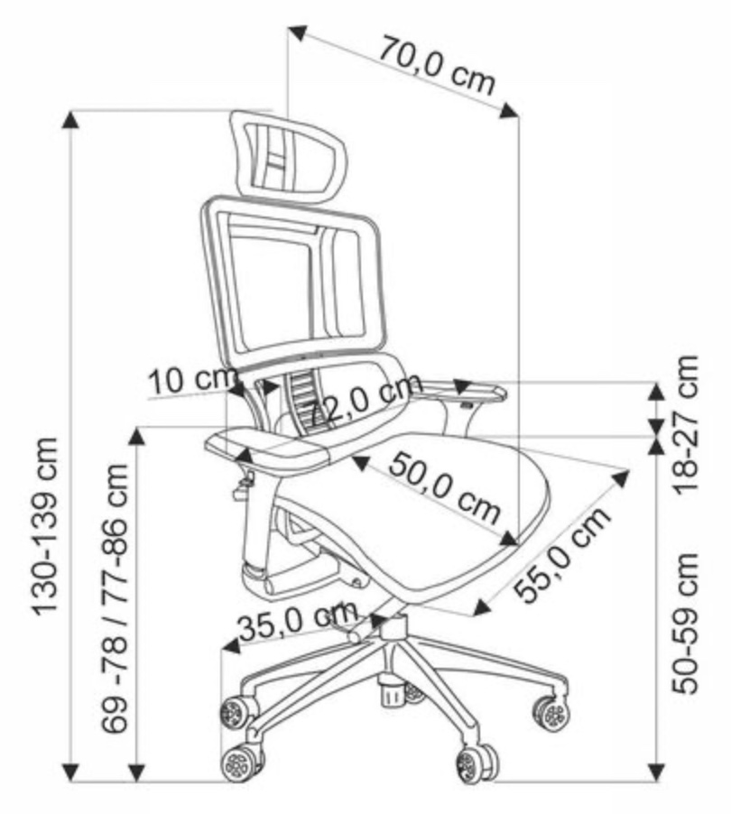 Nastaviteľná výška chrbtovej opierky umožňuje užívateľovi upraviť výšku chrbtovej opierky podľa vlastných preferencií a poskytuje dostatočnú oporu pre chrbticu. Nastaviteľné podrúčky umožňujú prispôsobiť výšku podrúčiek výške vášho pracovného stola a individuálnym potrebám. Nastaviteľná opierka hlavy poskytuje dodatočnú oporu krku a hlave, čo pomáha uvoľniť krčné svaly a zabraňuje nadmernému zakriveniu krku pri dlhšom sedení. Predĺžiteľný sedák je funkcia, ktorá umožňuje nastaviť hĺbku sedáku, čo užívateľovi umožňuje optimálne prispôsobiť stoličke vašej postave a poskytuje lepšiu oporu stehien.