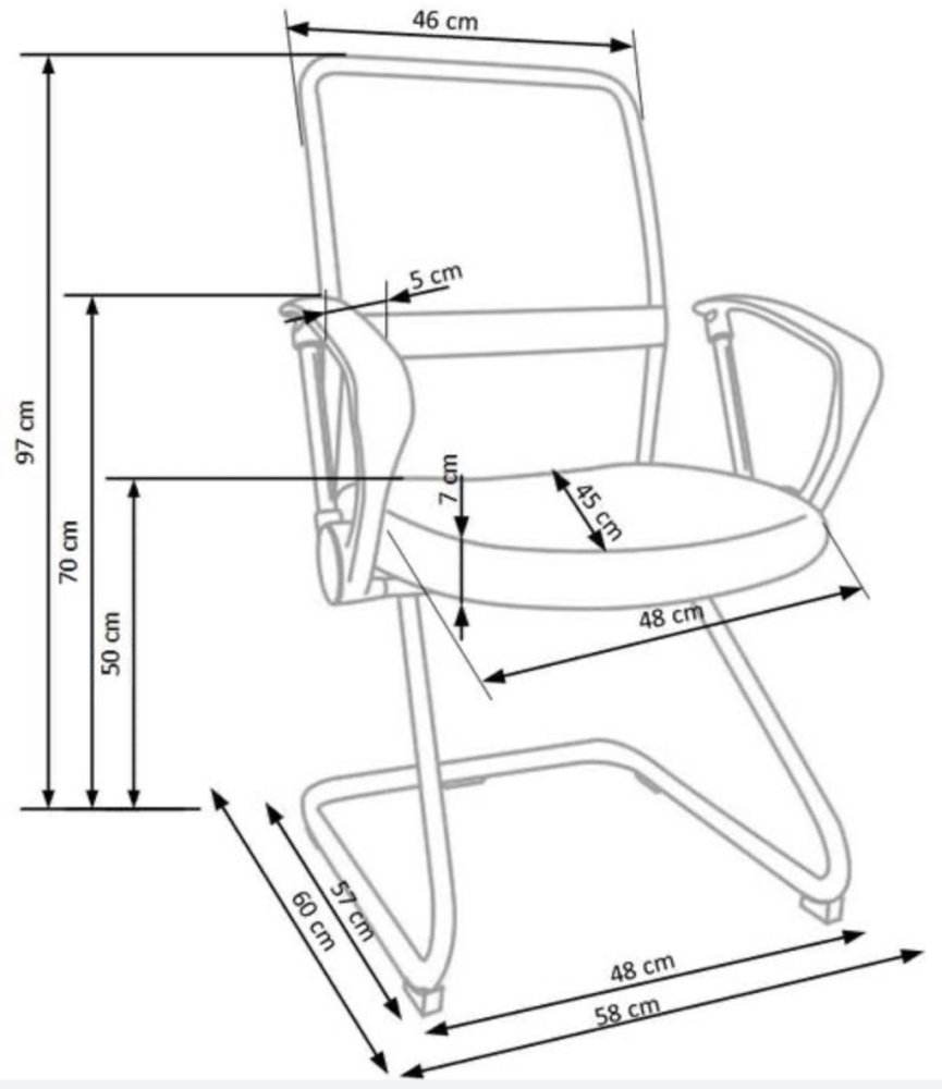 Kreslo VIRE SKID je vyrobené z kovu a PVC, sedák a operadlo z membránovej tkaniny a čiernej sieťoviny. Sieťovina a membránová tkanina poskytujú ventiláciu a umožňujú nášmu chrbtu dýchať. Základňa stoličky VIRE SKID v tvare sklzníc zaisťuje jemné hojdanie.